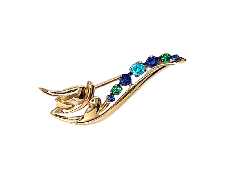 Золотая брошь с цветными фианитами — это яркое и стильное ювелирное украшение, которое добавляет изысканности любому образу.