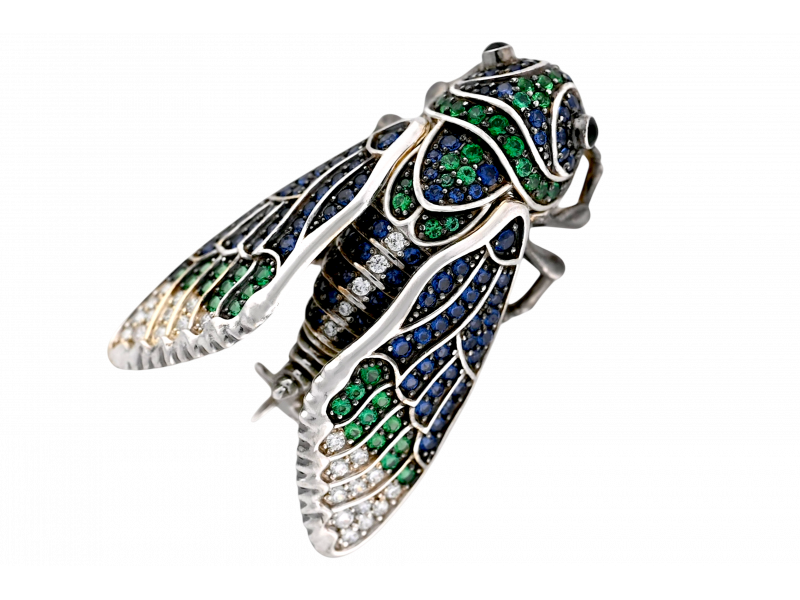 Представляем Вашему вниманию эксклюзивную золотую брошь "Муха" – смелое и оригинальное украшение для тех, кто ценит нестандартные решения.  Изящное тело мухи, выполненное из белого золота, усыпано россыпью синих, зеленых и прозрачных фианитов, создающих эффект переливающегося мерцания. Этот аксессуар станет ярким акцентом Вашего образа и подчеркнет Вашу индивидуальность. Пусть эта брошь принесет Вам удачу и процветание! "Муха" – символ настойчивости, трудолюбия и энергии. Эксклюзивная брошь из белого золота, станет Вашим талисманом и будет вдохновлять на новые свершения.