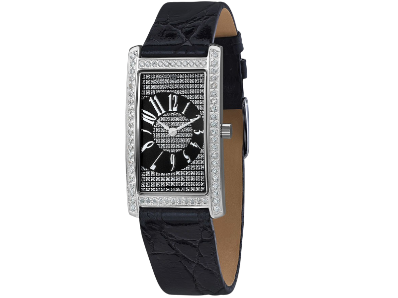 Эти женские часы – флагман коллекции Lady – воплощение праздничного изящества и королевского совершенства! Крупный прямоугольный корпус из серебра со всех сторон украшен бриллиантами или фианитами. Роскошная модель на каждый день или для особого случая.