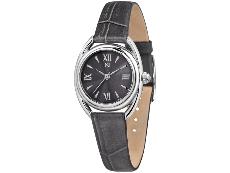 Женские серебряные часы представлены в нескольких оттенках: перламутр, антрацит, махагон. Римские цифры перемежаются утонченными часовыми делениями. Удлиненные ушки, сливающиеся с корпусом, превращают часы в целую планету с собственной орбитой!