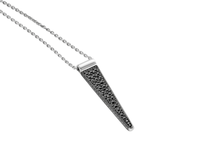 Роскошное золотое колье с бриллиантами подчеркнёт ваш стиль и индивидуальность. Удлинённый геометрический кулон, украшенный россыпью сверкающих бриллиантов, идеально дополняет изысканную золотую цепочку. Лаконичный и современный дизайн делает это украшение универсальным выбором для повседневных и торжественных образов.