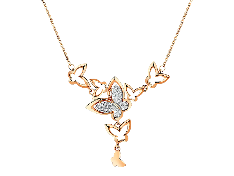Колье украшено изящными подвесками в виде бабочек, символизирующих красоту и переменчивость жизни. Каждая бабочка выполнена с великолепной детальностью, создавая впечатление легкости и воздушности. Подарите себе или своим близким это потрясающее колье, которое станет символом грации и стиля!