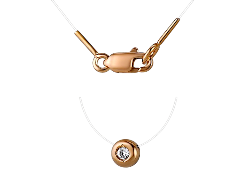 Золотое колье на леске с фианитом