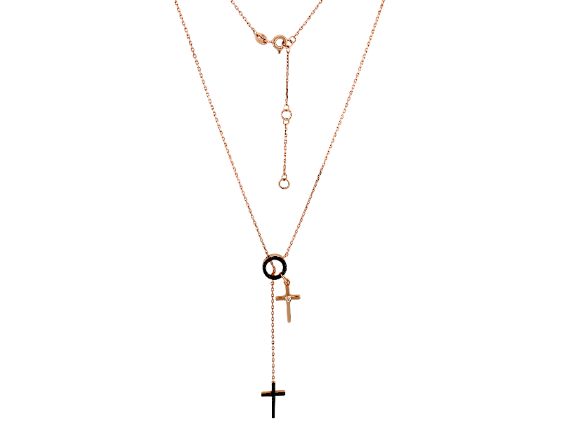 Золотое колье с бриллиантами — воплощение утончённой роскоши и современного стиля. Тонкая цепочка в сочетании с изящными крестиками и сверкающими бриллиантами создаёт эффектный и деликатный образ. Стильное оформление и актуальный дизайн делают колье универсальным украшением для особых событий и повседневной элегантности