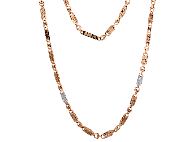 Золотое колье с бриллиантами — стильное и элегантное украшение для современных женщин. Изящная цепочка выполнена из благородного золота, украшена блестящими бриллиантами и оригинальным орнаментом на каждой детали. Такое колье станет роскошным акцентом для любого образа — от повседневного до вечернего.