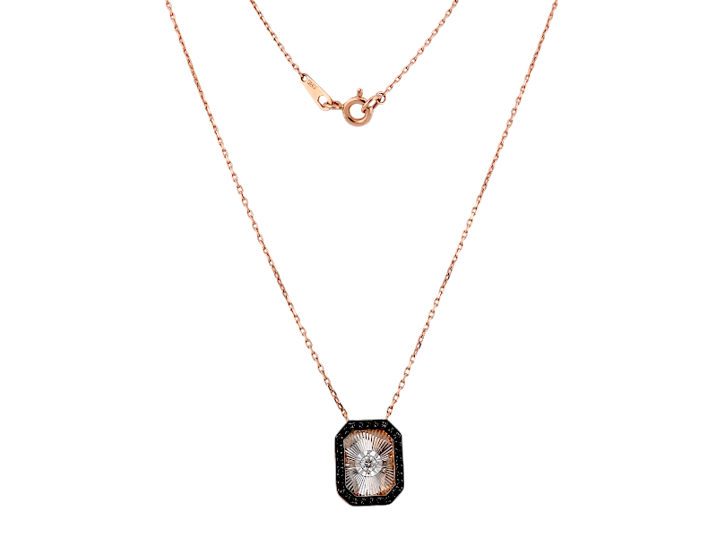 Представляем вашему вниманию изумительное золотое колье, которое сочетает в себе элегантность и роскошь. На этом ожерелье гармонично расположился эффектный кулон, усыпанный сверкающими бриллиантами, которые придают ему незабываемый блеск.