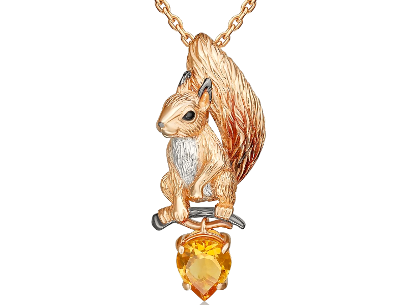 Подвеска золотая "Белка" с цитрином и эмалью