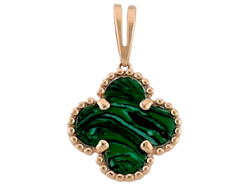 Золотая подвеска в виде клевера с малахитом