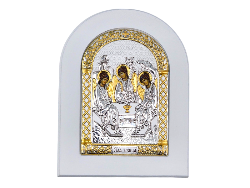 Икона "Святая Троица" – это уникальное произведение, выполненное в традиционном византийском стиле. Она отражает глубокую духовную символику и является важной частью христианской культуры.  Подчеркнута позолотой и изысканным орнаментом. Символизирует единство и гармонию Святой Троицы. Идеально подходит для молитвы или в подарок.