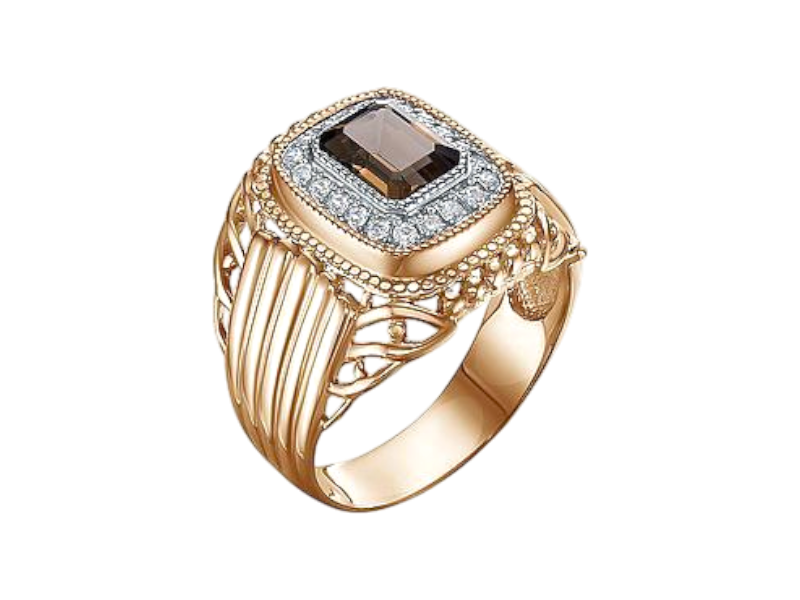 Элегантная печатка из красного золота 585 пробы, украшенная насыщенным раухтопазом и сияющими фианитами. Глубокий оттенок раухтопаза  подчеркивает изысканность и стиль, добавляя образу нотку роскоши.