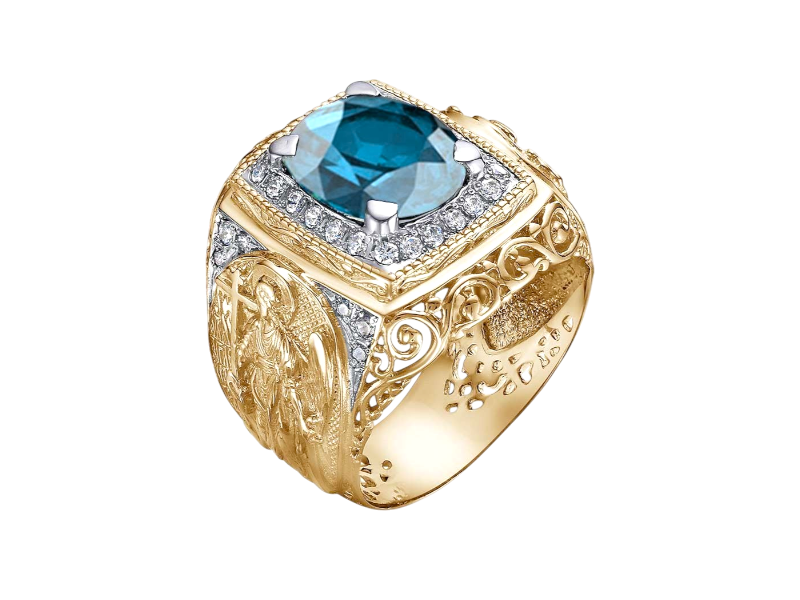 Золотая печатка с Ангелом-хранителем и Лондон топазом