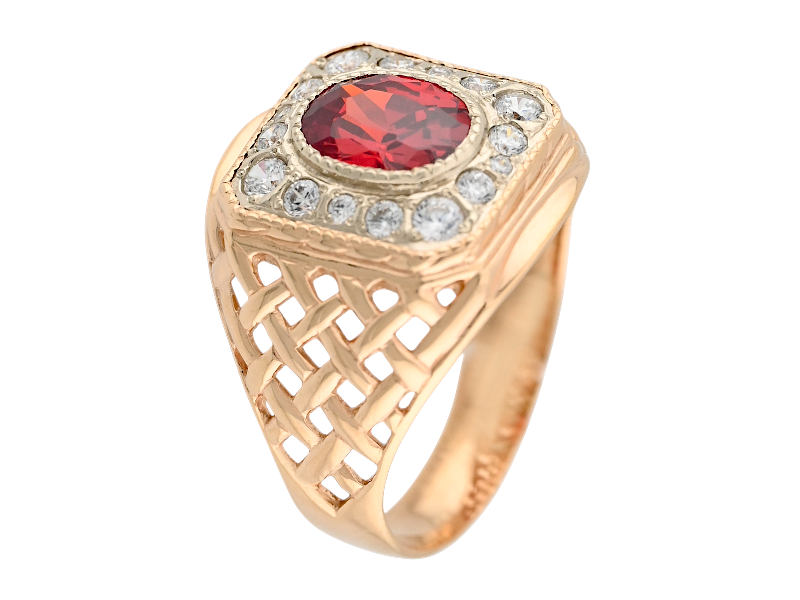 Золотая мужская печатка — элегантное и статусное ювелирное изделие. Выполнено из золота высокой пробы, украшено вставкой из красного фианита и сияющими бесцветными фианитами, придающей изделию изысканность и благородство. Подходит для повседневного ношения и официальных мероприятий, подчеркивает вкус и стиль мужчины.