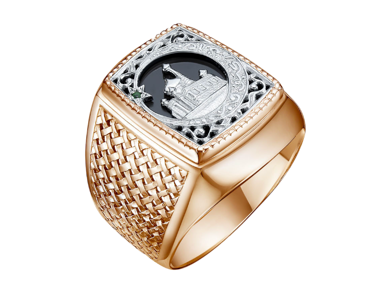 Стильная мужская печатка из красного золота 585 пробы. Печатка с изображением мечети является символом веры и духовности. Она может служить знаком принадлежности к исламской культуре и выражать уважение к религиозным традициям. Идеально подходит для повседневного ношения или особых случаев, подчеркнет индивидуальность и духовность.