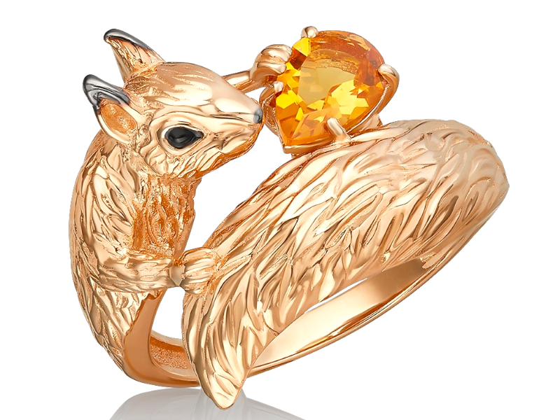 Кольцо из красного золота «Белка» с цитрином и эмалью