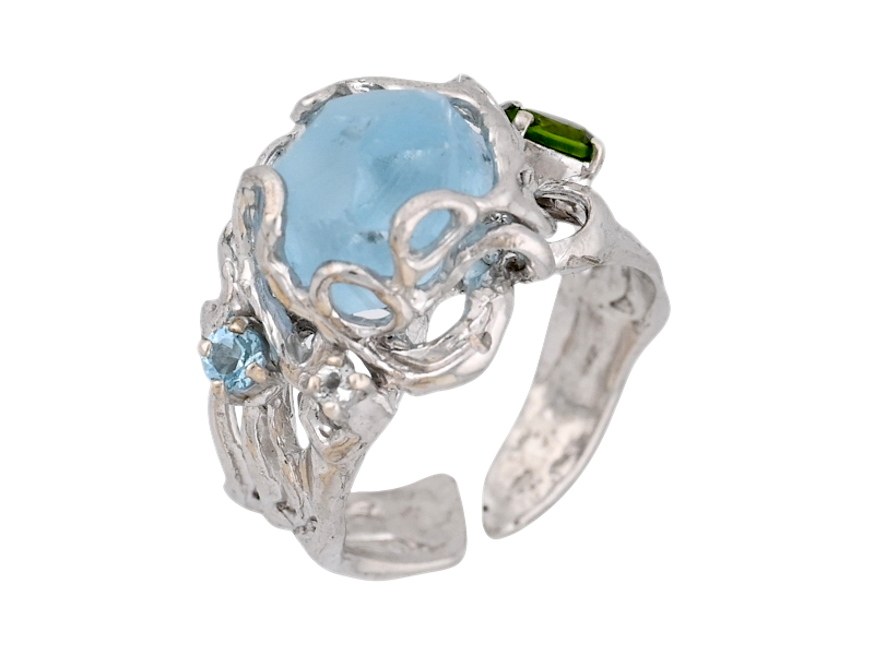 Топаз Swiss blue круг бриллиантовая 3.0, 0,03, Топаз белый круг бриллиантовая 2.0, 0,009, Хромдиопсид груша бриллиантовая 3.05.0, 0,045, Топаз Sky blue кристалл, 1,24