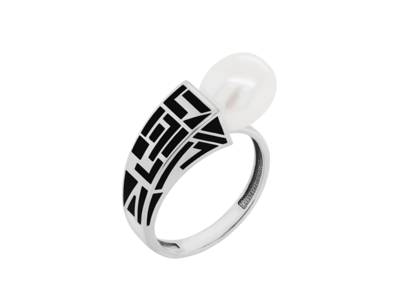 Кольцо из серебра 925 пробы с жемчугом и холодной эмалью от российского бренда Kabarovsky