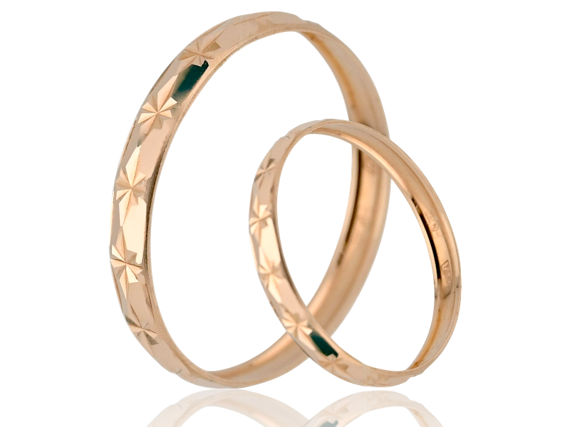 Представляем Вашему вниманию изысканное золотое обручальное кольцо 585 пробы. Его алмазная обработка придает неповторимый блеск  и добавляет современный шик. Этот символ Вашей любви станет прекрасным украшением и вечным напоминанием о самом счастливом дне!