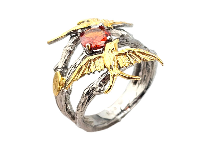 Серебряное кольцо с позолоченными птицами