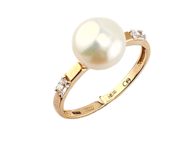 Элегантное золотое кольцо с белоснежной жемчужиной в центре, украшенной сияющими фианитами по краям. Изысканный дизайн подчеркивает женственность и добавляет образу утонченное сияние. Идеальный выбор для особых случаев и повседневной элегантности.