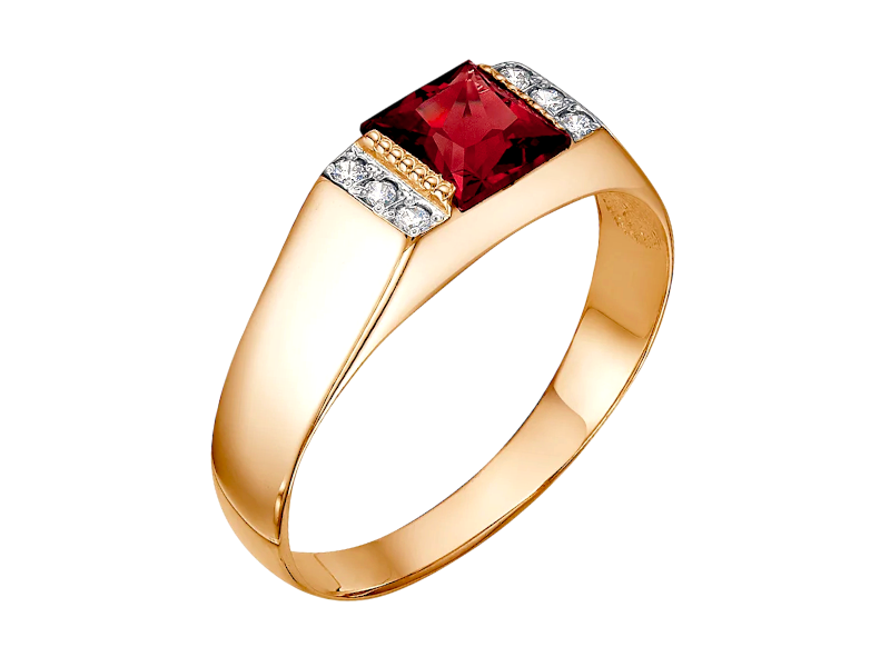 Золотой мужской перстень-печатка с гранатом и фианитами — изящное украшение, сочетающее роскошь золота с блеском драгоценных камней. Центральное место занимает гранат насыщенного цвета, окруженный сияющими фианитами, создающими эффект звездного неба. Перстень выполнен из высококачественного золота, идеально подходит для мужчин, предпочитающих стильные аксессуары с элементами классики и современного дизайна.