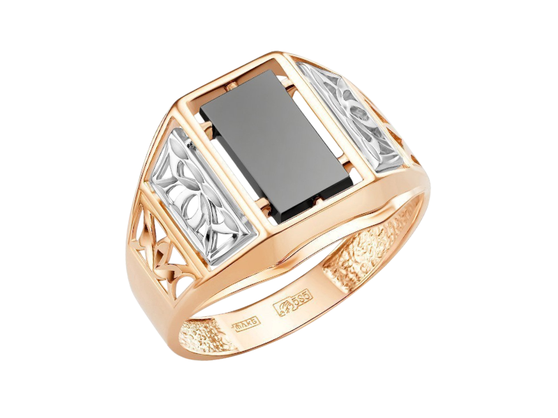 Мужская печатка из красного золота 585 пробы, украшенная вставкой из натурального черного оникса. Классическое сочетание теплого оттенка золота и глубокого черного цвета камня создает стильный и респектабельный аксессуар. Идеально подходит для дополнения делового или вечернего образа.