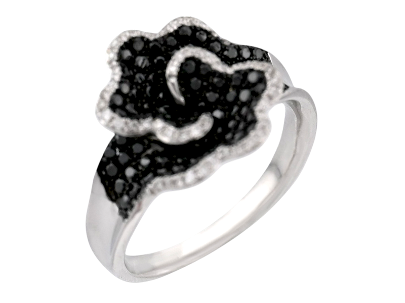 Волшебное кольцо из белого золота, которое станет изюминкой Вашего образа и подчеркнет Вашу неповторимость! Белое золото, словно морозный узор на окне, обрамляет таинственный черный бриллиант, искусно выполненный в форме цветка. Этот черный бриллиант, словно ночная роза, символизирует страсть, силу и элегантность. Кольцо – не просто украшение, это акцент, который расскажет о Вашем утонченном вкусе и смелости. Оно идеально подойдет для тех, кто предпочитает нежность и женственность, но хочет добавить немного дерзости в свой образ.