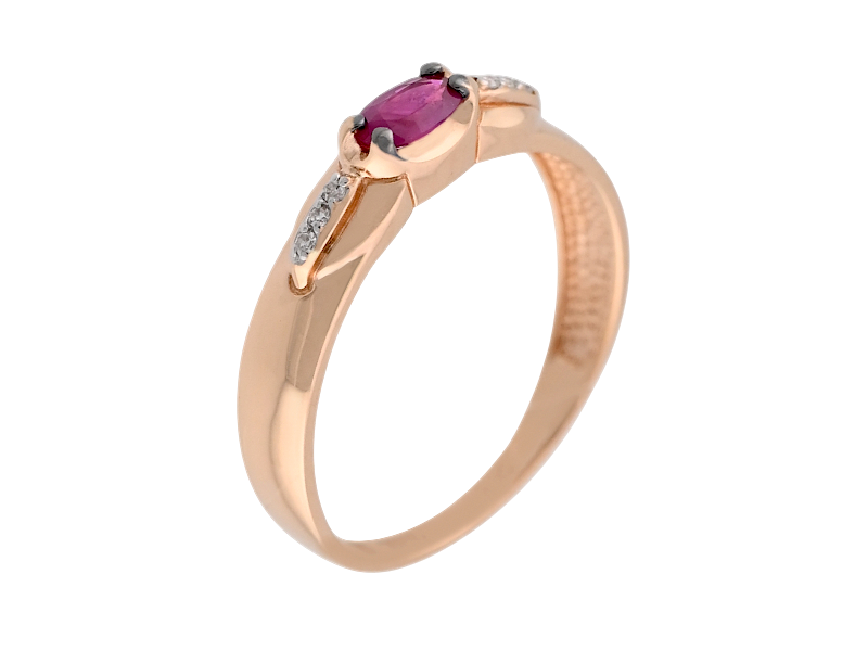 Золотое кольцо с рубином и бриллиантами  – это символ роскоши, воплощенный в ювелирном искусстве! Вместе эти камни создают потрясающий контраст: тепло рубина и холод бриллиантов, страсть и нежность. Такое кольцо будет смотреться очень эффектно и дорого, подчеркивая Ваш безупречный вкус.