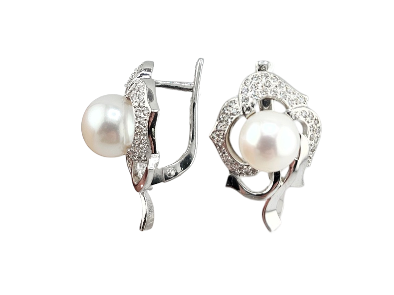 Изысканные серьги из белого золота с нежной белой жемчужиной. Классический и элегантный дизайн подчеркивает красоту жемчуга, создавая утонченный и благородный образ. Идеальный выбор для тех, кто ценит сдержанную роскошь и безупречный стиль. Прекрасный аксессуар на каждый день и для особых случаев.