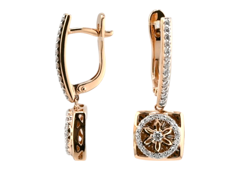 Изящные серьги из красного золота 585 пробы с подвесной частью, украшенной сверкающими бриллиантами. Элегантный дизайн подчеркивает утонченность и стиль, идеально подходит как для повседневных, так и для вечерних образов. Надежный замок обеспечивает комфорт и безопасность.