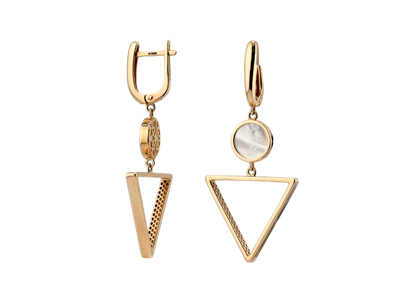 Эти очаровательные серьги выполнены из высококачественного золота и украшены изысканным перламутром, который играет светом и создает эффект многогранности. Их стильный и элегантный дизайн делает их подходящими как для повседневной носки, так и для особых мероприятий.