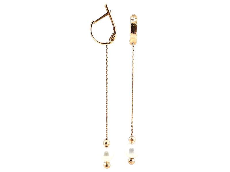 Золотые серьги с жемчужиной на цепочке