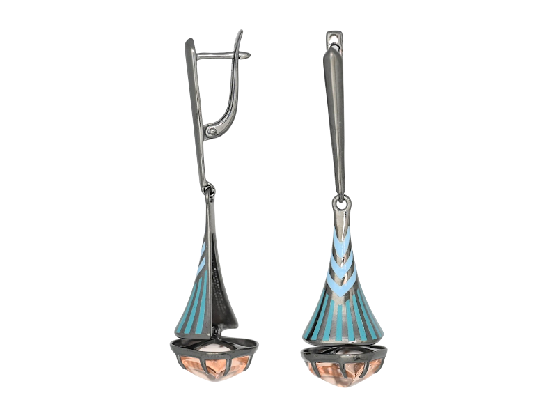 Серьги из серебра 925 пробы с алпанитами и холодной эмалью от российского бренда Kabarovsky.. Эти серьги дополнят любой образ — эмаль будет удачно и выигрышно дополнять как летящий летний сарафан, так и офисный строгий костюм.