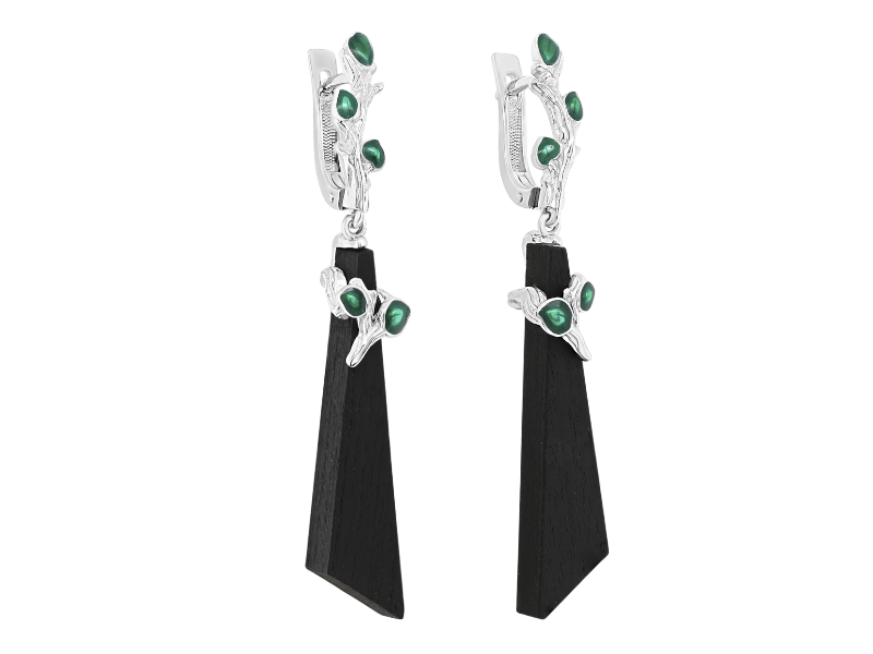 Серьги из серебра 925 пробы с деревом и холодной эмалью от российского бренда Kabarovsky. Эти серьги дополнят любой образ — эмаль будет удачно и выигрышно дополнять как летящий летний сарафан, так и офисный строгий костюм.