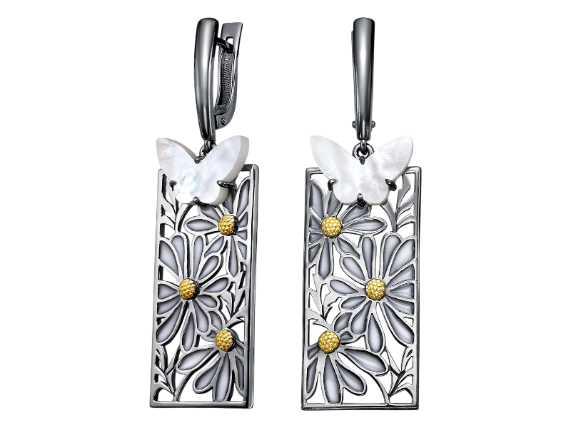 Серьги из серебра 925 пробы с перламутром и холодной эмалью от российского бренда Kabarovsky. Украшения с перламутром заключают в себе силу и красоту природы. Самоцветы, рождённые водной стихией, обладают особым шармом и являются воплощением женственности. Природные камни нашли своё самое оригинальное воплощение в украшениях Ювелирного Дома Kabarovsky и станут центром притяжения взглядов в вашем образе.