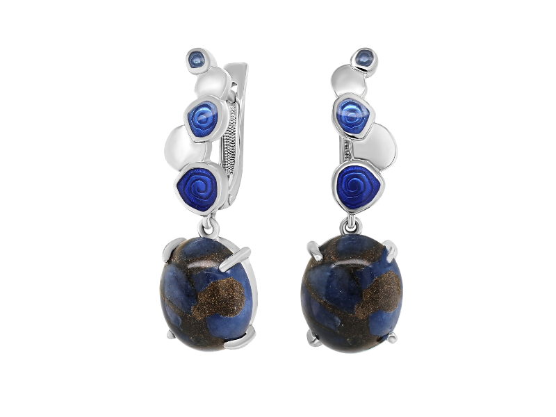 Серьги из серебра 925 пробы с бирюзами устричными и холодной эмалью от российского бренда Kabarovsky. Украшения с натуральными поделочными камнями по праву считаются одними из самых необычных и оригинальных. Натуральный поделочный камень с оригинальным узором, созданный самой природой, несомненно, станет центром внимания в вашем образе.