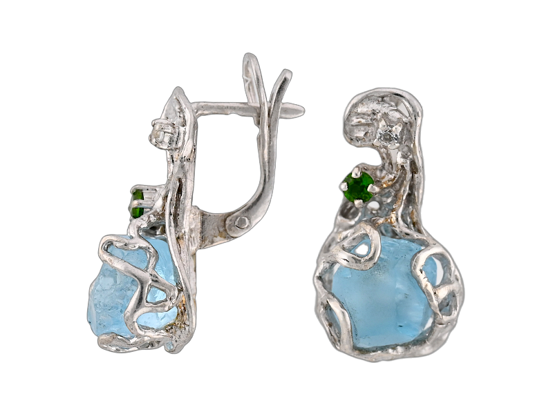 Топаз Sky blue кристалл*, 2,86, Топаз белый круг бриллиантовая 2.0, 0,018, Хромдиопсид круг бриллиантовая 3.0, 0,049