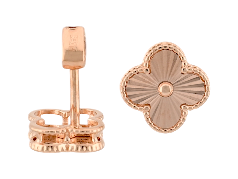 Элегантные серьги из драгоценного металла, выполненные в форме символа удачи — четырехлистника клевера. Поверхность украшена тонкой алмазной огранкой, благодаря которой изделие блестит и переливается на свету. Подходят как для ежедневного ношения, так и для особых случаев. Идеальное сочетание классического дизайна и современной обработки материала.