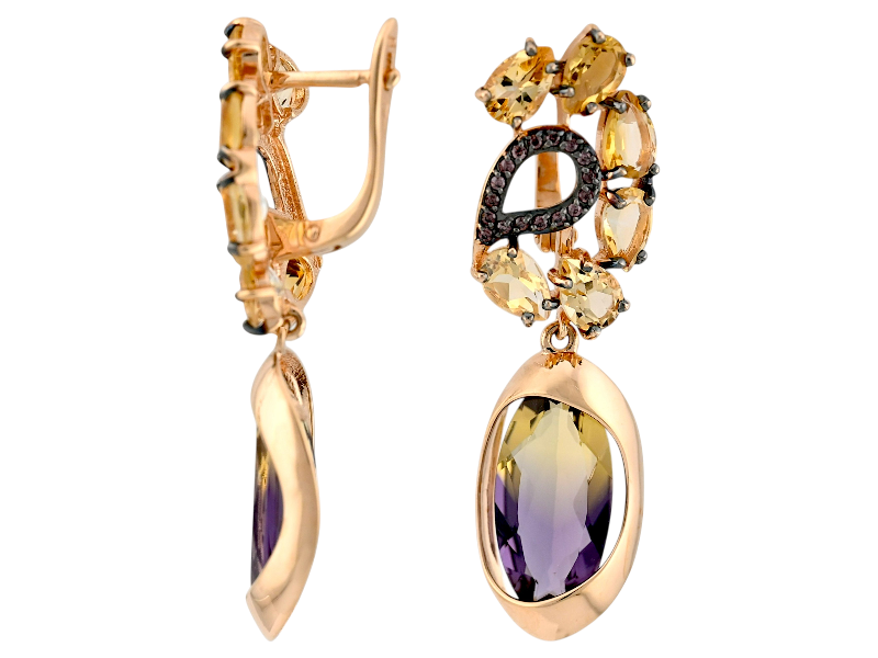Золотые серьги с аметрином и цитрином