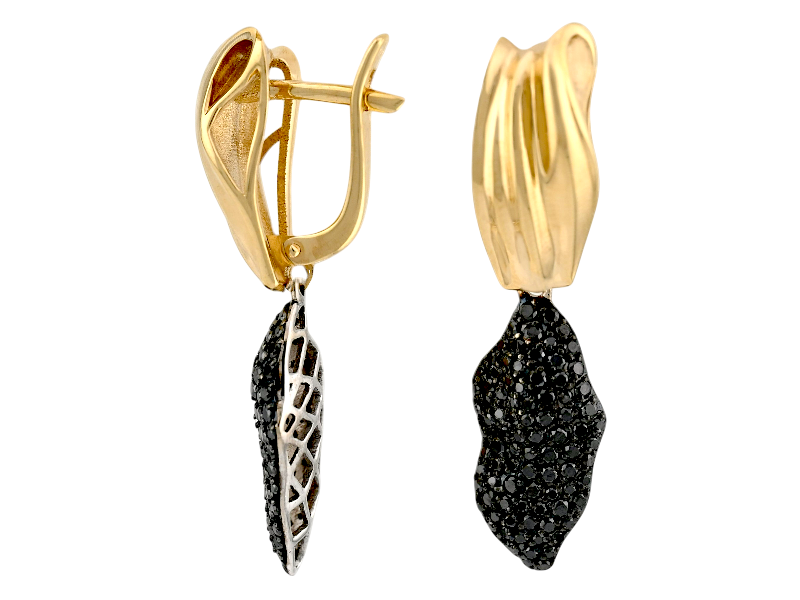 Золотые серьги с черными бриллиантами