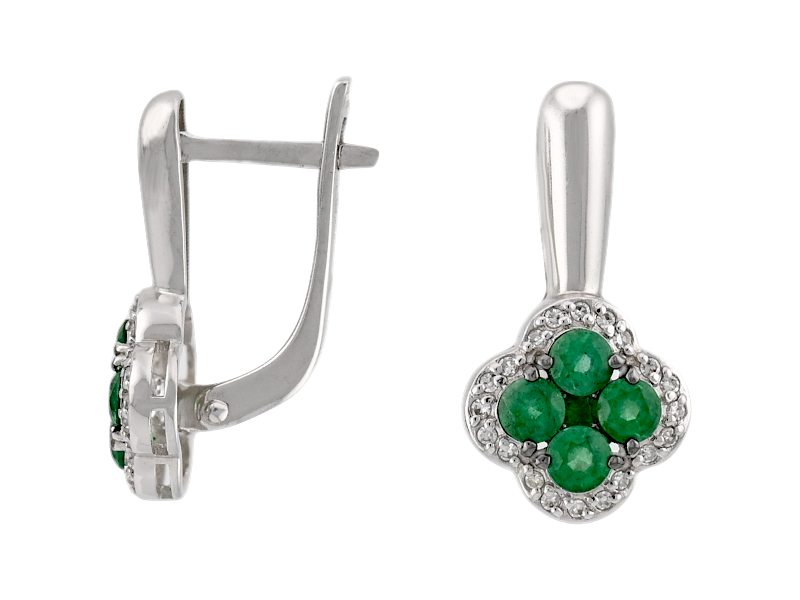 Золотые серьги с изумрудами и бриллиантами