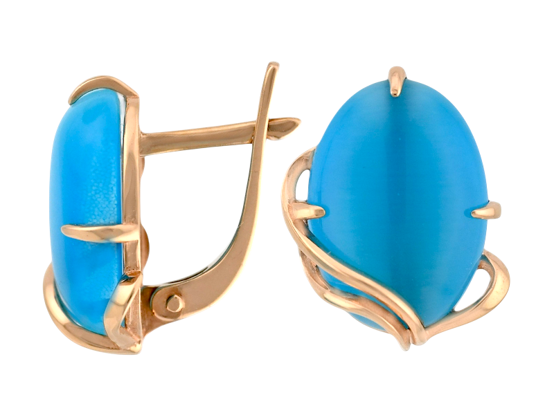 Золотые серьги с кошачьим глазом
