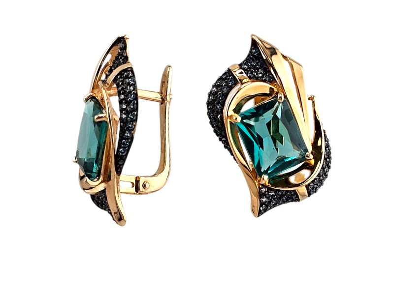 Золотые серьги с Турмалином Параиба