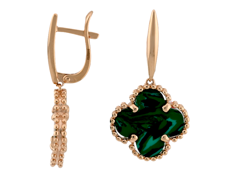 Эти серьги – настоящее произведение искусства, сочетающее в себе элегантность золота и глубокий, завораживающий оттенок малахита.  Клевер, как символ удачи, в сочетании с малахитом, камнем гармонии и процветания, создаст неповторимый образ, наполненный смыслом и красотой.